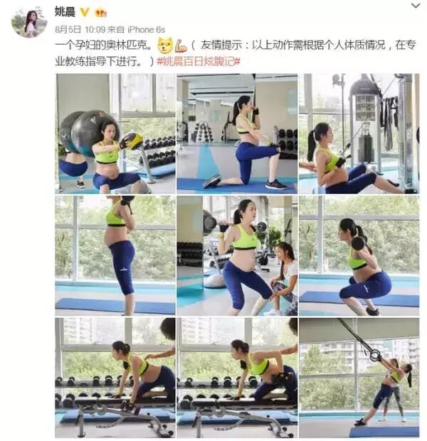姚晨在微博上放了一组专业教练指导下进行健身训练的照片,顿时热闹炸开了锅,有人说,做女明星太拼了,还带“球”运动, 也有人羡慕其只长肚,不长肉的身材。