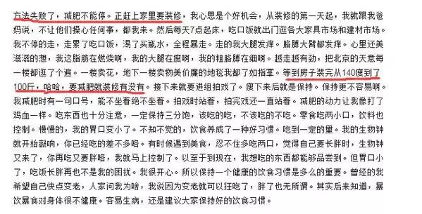 坚持了一个月后房子装修完了,她居然从140斤火速瘦到了100斤,自己也惊呆了,看来一个月瘦40斤真的不是梦…… (瞧瞧这对比)