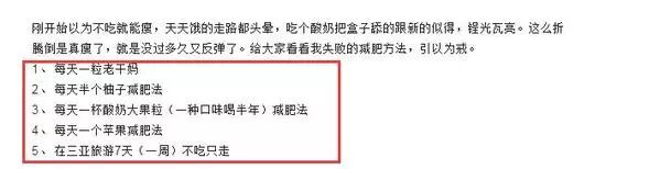 耿直的她之前还在知乎上分享了自己的减肥方法,但在瘦下来之前她也尝试过很多错误的方法,比如猛吃减肥药,结果不是没效就是反弹。