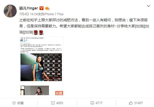 毕竟颖儿也曾说自己是从一个瘦子突然变成了一个胖子,还是屡次减肥失败,这过程想必也是很心酸了。