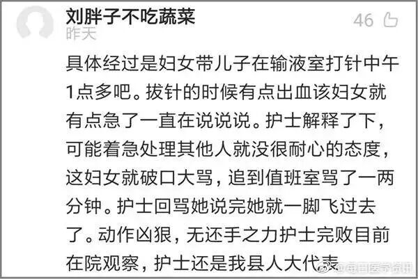 此次事件有以下几个的关键点:局长太太、踹倒怀孕护士、医疗服务行业。