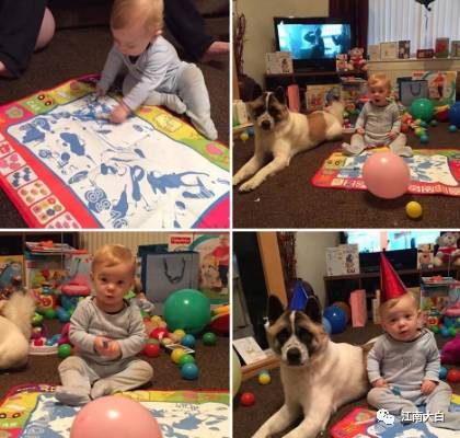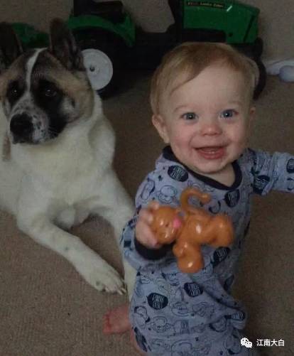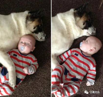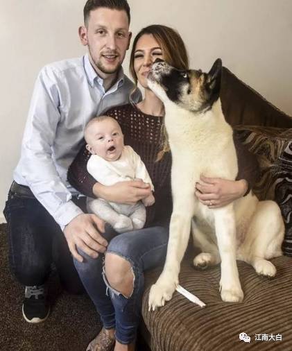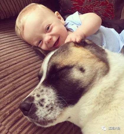小两口都超级开心,可爱的孩子,温柔的大狗,还有恩爱的另一半,这可是无数人的憧憬。