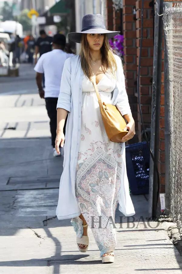怀孕中的杰西卡·奥尔芭 (Jessica Alba) 依然光彩照人,甜美又实穿的外套+连衣裙正是她最拿手的搭配“套路”。