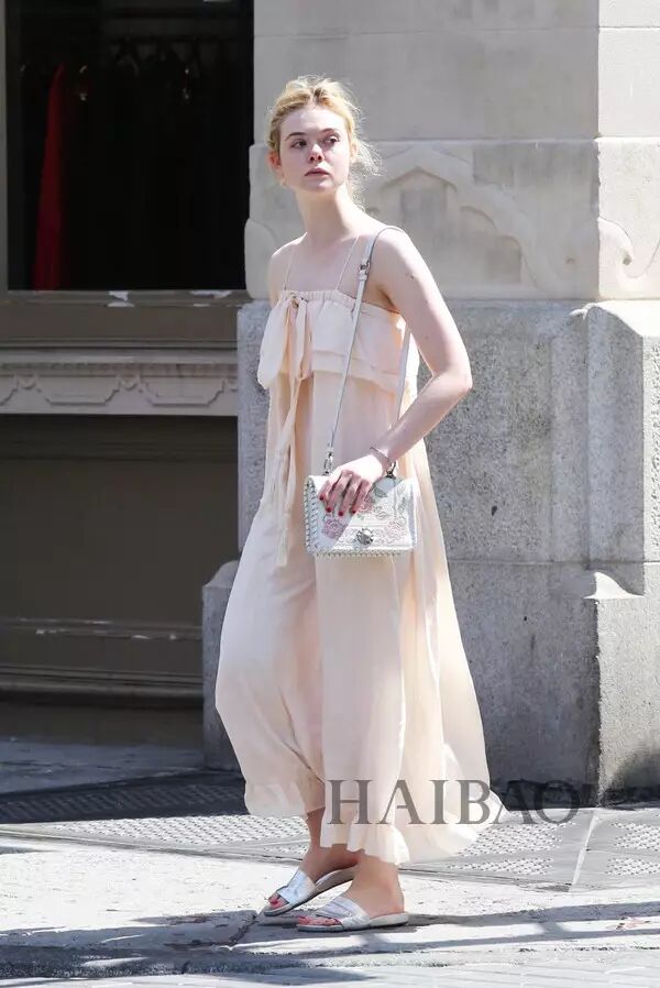 好久不见的艾丽·范宁 (Elle Fanning) 连换三套Look出街,皮肤白皙宛如邻家少女,但比起短打Look,拥有身高优势却被“小粗腿”拖累的她还是穿长裙最适合。