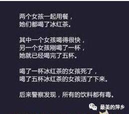 某女同学,一天顾影自怜,忽转头对后面的人说:"我的胸毛美不美?"