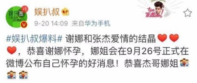 还有娱乐博主直指谢娜会在9月26日正式公布怀孕好消息。