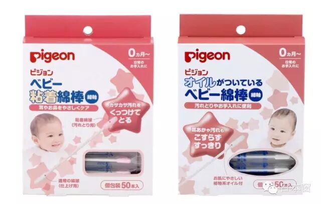 贝亲的细棉签也是囤货必备品。左边粘着性棉签,红色一端具有粘性,适合清理宝宝鼻子、耳朵、肚脐等部位,可以把脏东西粘出来。右边是带有橄榄油的,有润滑宝宝幼嫩耳鼻部皮肤及黏膜不会受到损伤的作用。