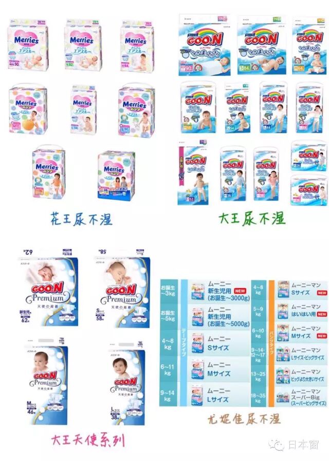 在日本比较畅销的三大尿不湿品牌分别是花王、大王和尤妮佳。