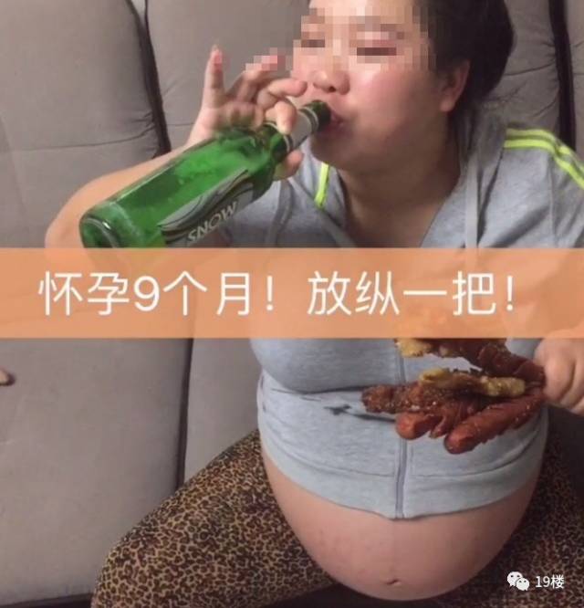 视频上的一名孕妇,在视频和直播中不断地显摆自己能吃能喝,啤酒、白酒、烧烤、麻辣烫各种吃喝。