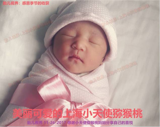 图一、美丽、 cute的上海小天使猕猴桃,你是上帝在2017年感恩节献给你的爸爸、妈妈的最好礼物!胎儿视界恭喜小猕猴桃妈妈。照片来自小猕猴桃妈妈的喜悦分享 (Courtesy of Ms N Mo)
