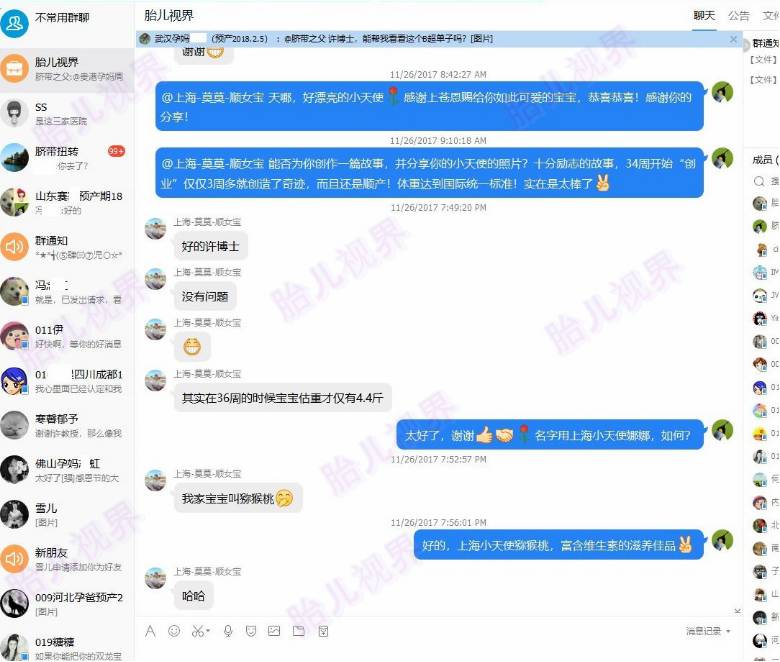 图五、抑制不住喜悦的小猕猴桃妈妈,激动地在胎儿视界的QQ群的大家庭里分享了丰收的信息、宝宝照片,并确定了这篇激动人心的励志故事的撰写!