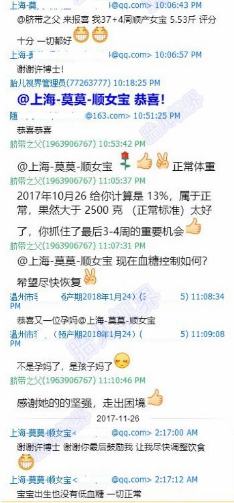 感恩的季节总是好消息接连不断,刚刚享受美味火鸡大餐,胎儿视界 就收到来自上海孕妈的喜报:“11/25/2017 @脐带之父 来报喜 我37+4周顺产女宝 5.53斤 评分十分 一切都好”。