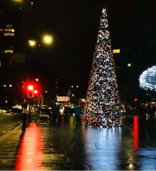 图四、随着小天使猕猴桃按捺不住提前来到这个世界,现代科技发源地英国也提前进入圣诞季节,伦敦街头喜庆的夜晚灯火闪烁(图片来源:Dr J Deng, UCL 英国伦敦)