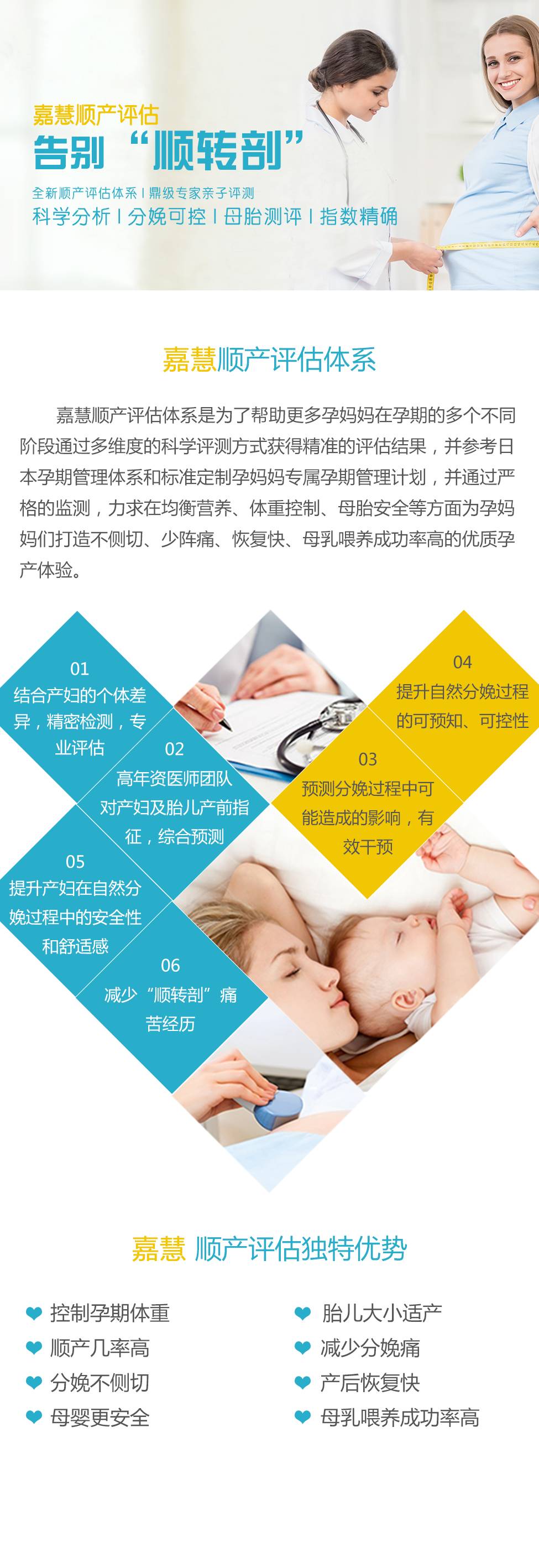 快乐的孕产应该是孕妈妈们不失美丽的同时,拥有安全的、优质的、无痛的孕产体验,嘉慧顺产评估体系正为您带来您所期待的美妙孕产之旅。
