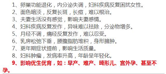 生殖营养缺乏,卵巢功能降低,过早出现皮肤松弛、粗糙、皱纹、乳房下垂、面部出现色斑,脱发等衰老现象者;