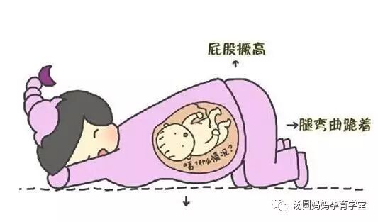 这是准妈妈自我纠正的一种有效方法。动作要领是:准妈妈跪在硬板床上,胸部垫一个枕头,将两手前臂上屈,头部转向一侧贴在床面上,臀部与大腿成直角。可每天做2 ~ 3 次,每次10 ~ 15 分钟,5 ~ 7 天为一疗程,一个疗程后复查胎位。这种方法简单易行,但是常常让准妈妈感觉腰酸、头晕、恶心,不容易坚持。