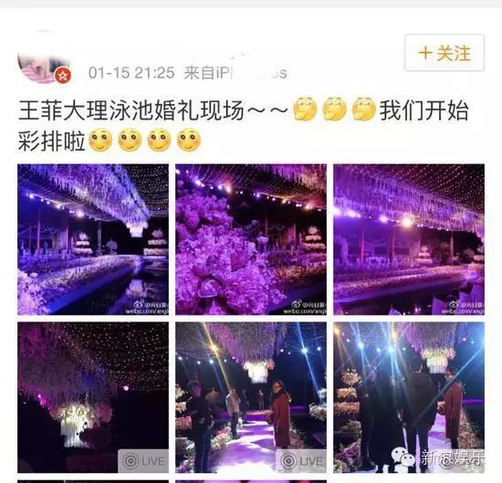 微博有个自称是婚庆公司的网友爆料,言之凿凿的称正在“王菲大理泳池婚礼现场~~我们开始彩排啦”