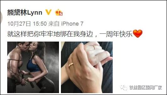 此前,郭富城生日的隔天,熊黛林在微博上载与老公的密切照,庆祝成婚一周年,她更留言说:“就这样把你牢牢地绑在我身边,一周年快乐。”