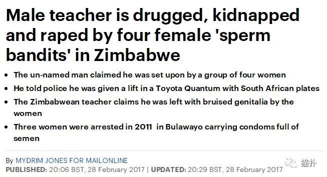 这就不得而知了,不过津巴布韦已经有不少女性被捕,但是肯尼亚的“精液收割团”们的手法显然更加高明……到现在为止,还没有人被发现,这是怎样的境界…