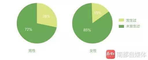 从性别区分上来,34.8%的女性曾遭遇过性暴力或性骚扰,男性人群中这一比例稍高,为35.6%.