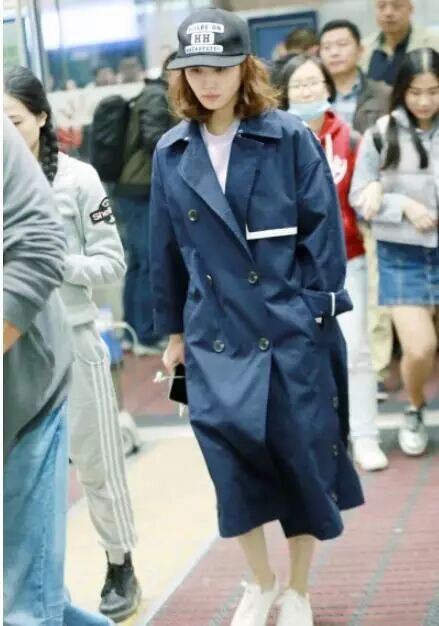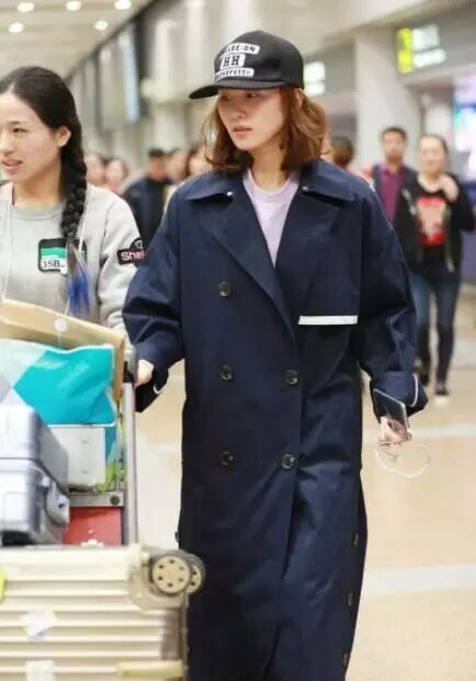 宽大的风衣就像一件硕大的大袍子,让刘诗诗看着非常娇小,衣服不是很合体,而且大风衣下面还配着一条牛仔热裤