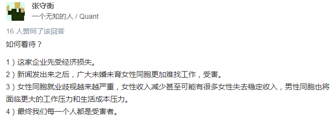 此类案例对女性就业形势的担忧