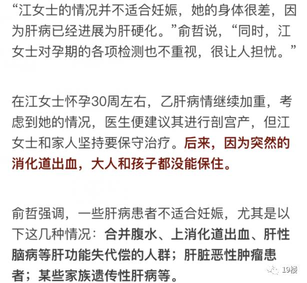 @心宿:已经肝硬化就不要彰显母爱了。其实乙肝感染一般都不影响怀孕生产哺乳,而且现在医学昌明,已经不算事了。未来也是越来越好,不必总是危言悚听,个例这种在任何病况下都会存在,比如单纯的怀着巨婴还非要顺产的,危险比比皆是。