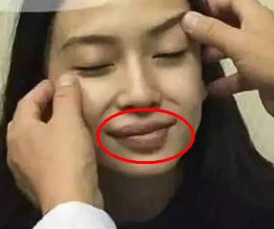 如果把这一部分补齐的话,Angelababy的嘴唇立马原形毕露。
