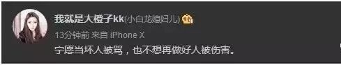 前段时间小白龙媳妇大橙子就发博跟小白龙发生了矛盾,后来小白龙哄好了估计,今天大橙子再次发微博,又一次的透露了与小白龙发声了不和,大橙子是这样说的:“宁愿当坏人被骂,也不想再做好人被伤害”!随后下面很多游客又带节奏,还有的粉丝让大橙子好好做媳妇,做好吃的给小白龙,服侍好小白龙就不会有矛盾了,结果被喷化,大橙子可是怀孕7个月的人啊...