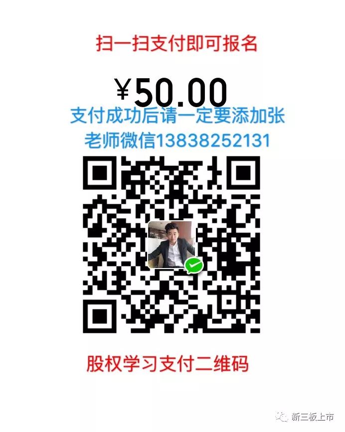 附注:支付完费用,务必添加张老师微信,预约课程学习,老师会在第一时间通过,同时邀请进入股权学习群!预祝学习愉快!