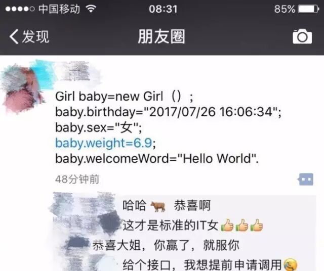 现实中一位女程序猿的报喜方式,可以说很有职业特色了