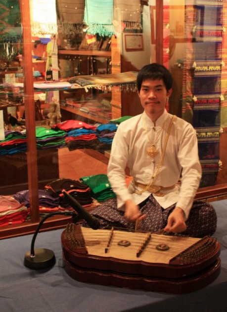 餐厅门口有个乐师正在演奏泰国乐器,这在东南亚餐厅里也并不稀奇。