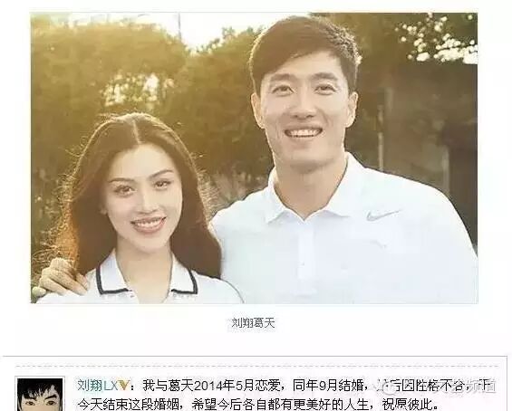 今年6月25日,刘翔正式宣布离婚。290天婚期之短暂,甚至连婚礼还没来得及办。尽管已经退役,但刘翔的私生活依然备受关注,他对婚姻一事的处理即便已极度低调,但仍留下一些未被证实的疑团。除了刘翔提出的性格原因,还有一种“传闻”,即两人结婚的最直接原因,是葛天告诉刘家自己已怀孕,但最终被证明是假消息。早前,还有媒体曝出婚变内幕,称其中一个原因是南北差异大,婆媳关系曾为吃一块红烧肉翻脸,让网友调侃:“一块红烧肉引发的婚变”。