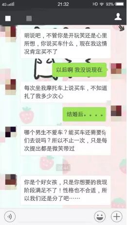 娃娃姐好!一直关注您,最近跟男友相处有危机了麻烦你了。跟男友是相亲网站上认识二个月,我168 115 本科 非处独 ,他173 130 大专 处非独 已发生关系 已知踩女非处男处的雷区 三选二 他家有两个姐姐已经结婚,他家是做服装生意,已经全款买房是他的名字。以前他要我问他问题,当面我问了很多现实问题 我深知自己一开始就pu爆很高了,从开始问以后结婚能否加名,他说结婚前不可以,也没有考虑过这个问题。之前问他我和他妈落水救谁?他说救他妈,然后跟我一起。刚开始他觉得我很完美,我之前就说过我没有你想得这么好。一直以来都对我很好很宠我基本都听我的 所以我有时候就很强势 因为每次生气他都来哄我 所以每次说话什么的很随意 有些话我不该说 但是也说了 他很在意 我以为他没事 突然有天他直接跟我微信说分手 我感觉很突然 我觉得他分手理由是借口吧 以前我说的很多话伤他自尊心了 我现在解释了一些之前的误解 争取了相互考虑半个月的时间冷静 提问他是否不爱我了 是否没必要挽回了 这段时间我不会主动联系 他不联系就默认分手了对吧 我想知道以后怎么跟别人相处 怎样不会爆pu 附照片和聊天记录参考感谢娃娃姐