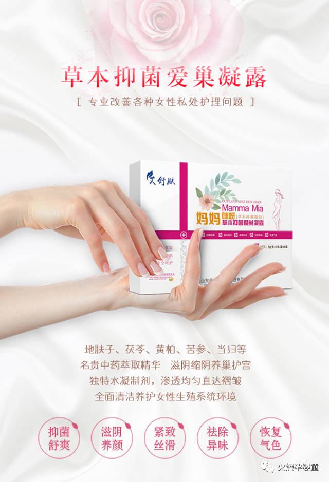 艾舒芙草本抑菌爱巢凝露,针对常见妇科疾病,精选苦参、黄柏、金银花、蛇床子、芦荟、茯苓、百部等数十种名贵中草药,独家添加细胞生长因子,不含激素、草本温和,具有清宫排毒、消炎杀菌、滋阴补气、缩阴润巢4大功效,全面调节清洁女性生殖系统内环境。