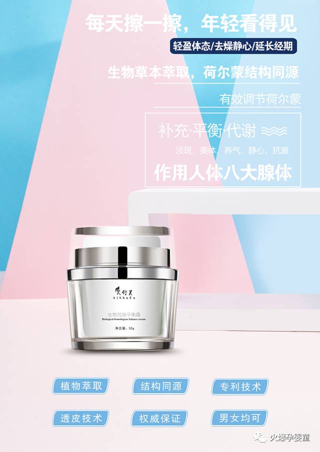艾舒芙生物同源平衡霜,直接作用于人体八大荷尔蒙分泌腺体,通过诱使腺体分泌、补充、平衡各自荷尔蒙,充分改善因荷尔蒙失衡导致的肌肤衰老、皮肤粗糙、失眠暴躁、痛经少经、体型臃肿等早衰、早更、亚健康状态!