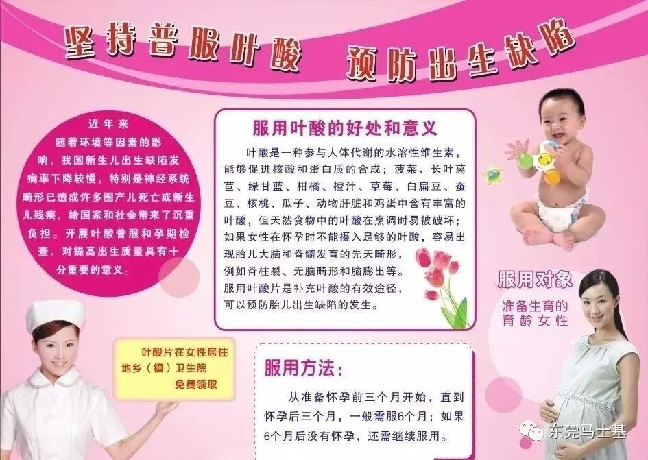 服用叶酸可以有效降低出生人口神经管缺陷发生率。为了加大宣传力度和增强怀孕女员工对服用叶酸的重视程度,东莞市卫生和计生局发布了妇女增补叶酸预防神经管缺陷项目实施方案,根据该方案,政府将免费为全市准备怀孕和孕期3个月内的妇女提供叶酸(覆盖本市户籍和常住人口)。主要内容如下: