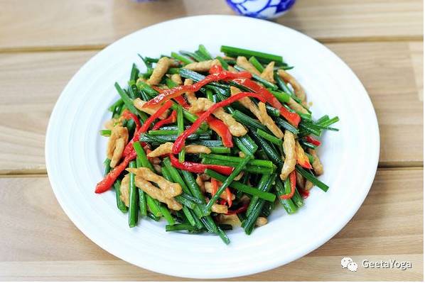 做法:将韭菜洗净,切成小段,锅烧热,放入适量食用油,将韭菜、鸡肉和虾米一同炒熟,加少许盐即可。