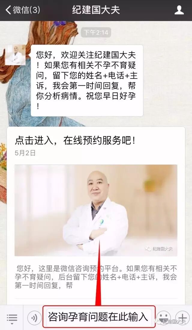 ☞这里是微信咨询预约平台。如果您有相关不孕不育疑问,后台留下您的姓名+电话+主诉,我会第一时间回复,帮你分析病情。祝您早日好孕!(详情请看下图)