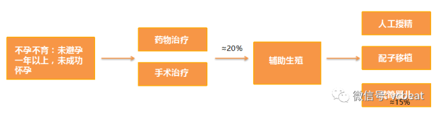 “互联网+辅助生殖”属于慢病领域的热门。从慢病属性来说,不孕不育病期不像糖尿病、高血压等维持一生,在治疗上又存在较高成功率的标准化方案(主要分为人工授精和试管婴儿两大类)。
