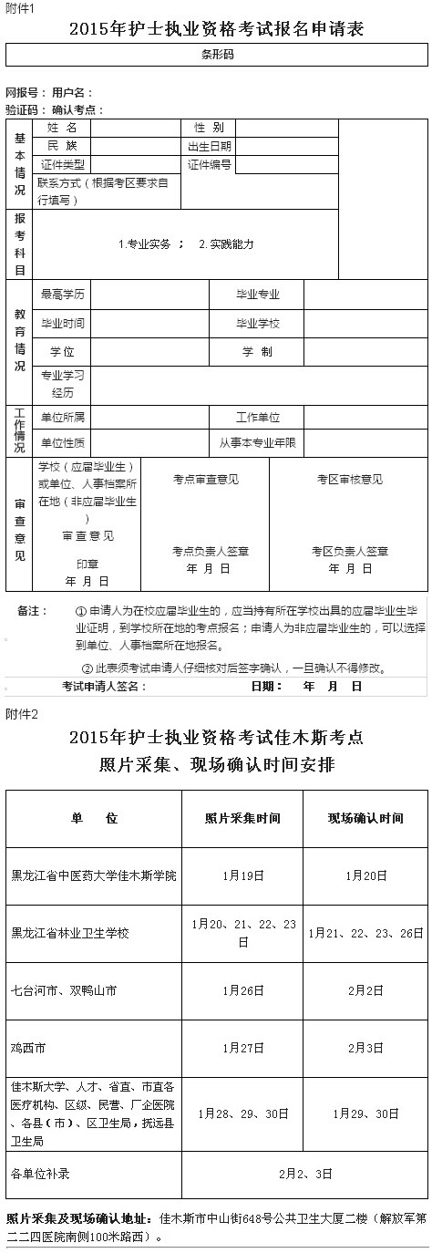 佳木斯市卫生和计划生育委员会 2015年护士执业资格考试公告 第1号