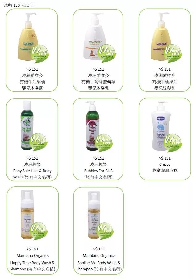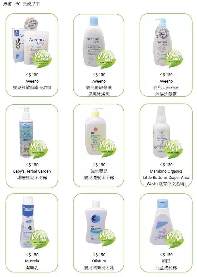 世界绿色组织近日公布了婴幼儿冲洗产品的正面清单: