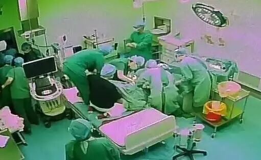 院方得知情况后,立即开辟出绿色通道,并通知儿科医生前往手术抢救。汤红则一直跪在病床上,一手在产妇阴道内上推脐带,一手按住胎心监护仪的探头监测胎心,其余医师和助产士则奔跑着推着病床入手术室,用最快的速度做着术前准备,与时间赛跑。