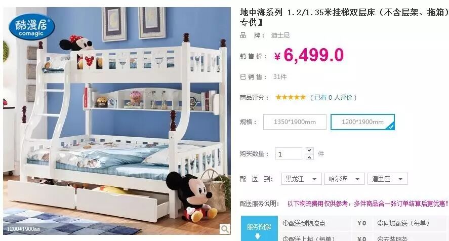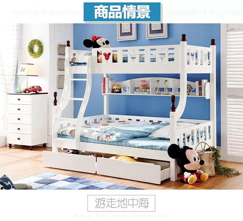 地中海系列1.2/1.35米*1.9米挂梯双层床(不含层架、拖箱)