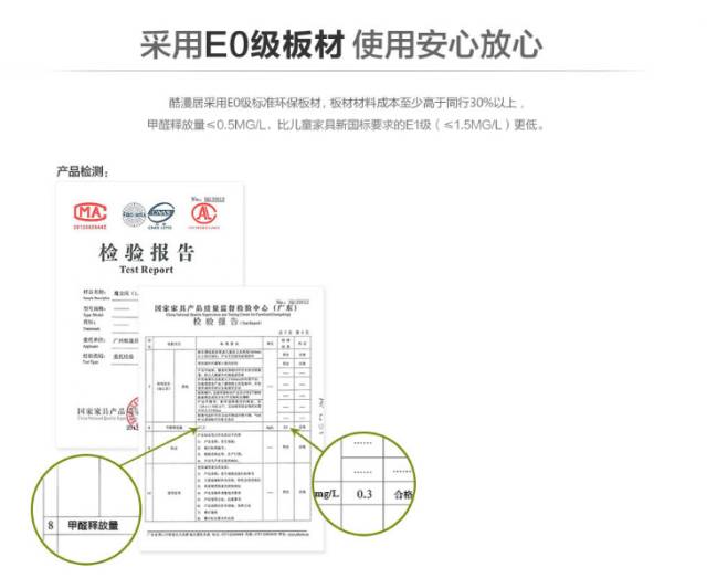 酷漫居坚持采用E0级板材和优质实木等环保材料,