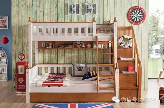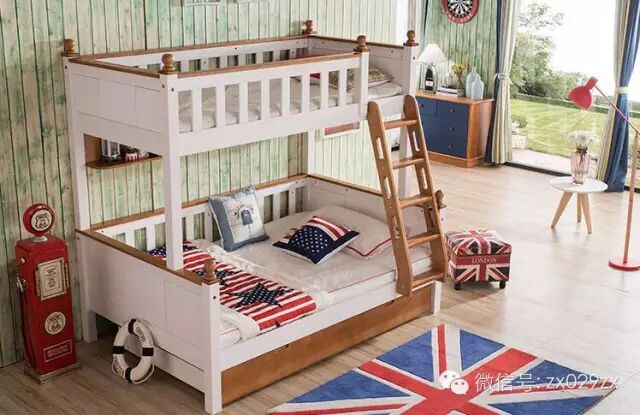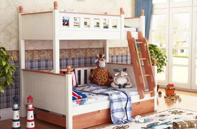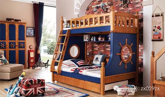以上地中海风格高低床也是一样的,板材一定控制在2.5cm,好处是有一部分是实木制作。价位稍高于简约风,在三千左右,当然如果要自己制作这个费用是不可能的。网购价格应该很低