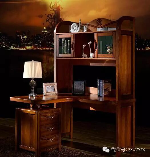 ◆柚木书桌连柜,适用于中式风格