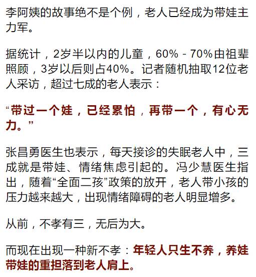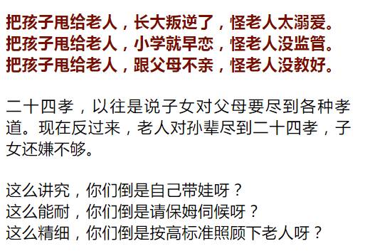 没想到,还是要继续拼命,为了孩子的孩子。霸占父母的晚年时光,何尝不是精神啃老、体力啃老?这种不孝大概就如王尔德说的: