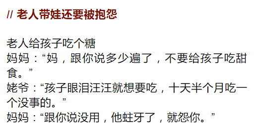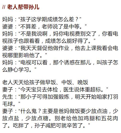 我们加班忙不开时,无论让我爸妈还是他爸妈去接,他们都风雨无阻,这就是儿孙之爱。我们想过二人世界,让娃去姥姥姥爷家玩个半天,他们愿意推掉麻将配合,这就是理解。