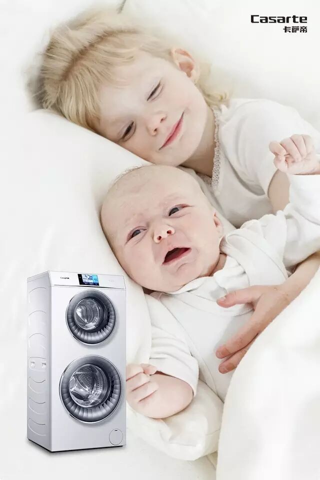 卡萨帝双子云裳的双滚筒为二孩家庭提供分区洗护,每个孩子都有属于自己的专属洗护空间,不会让大孩有被忽视的感觉。